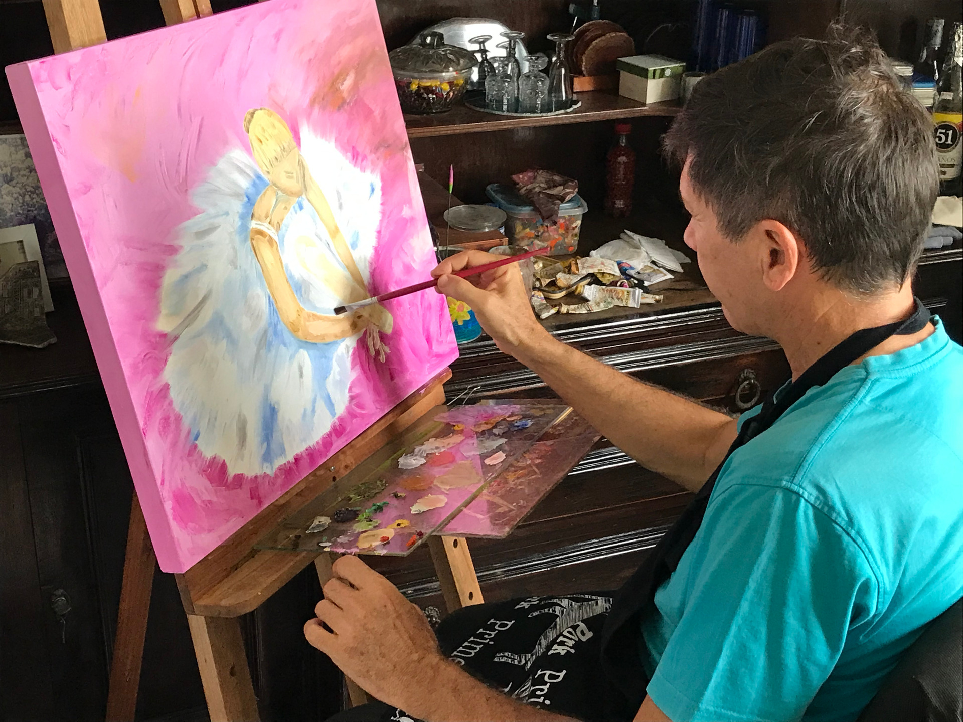 A fotografia me eleva a um outro patamar, fotografar as pessoas em sua plena felicidade não tem preço e a pintura me faz refletir a um mundo melhor.
