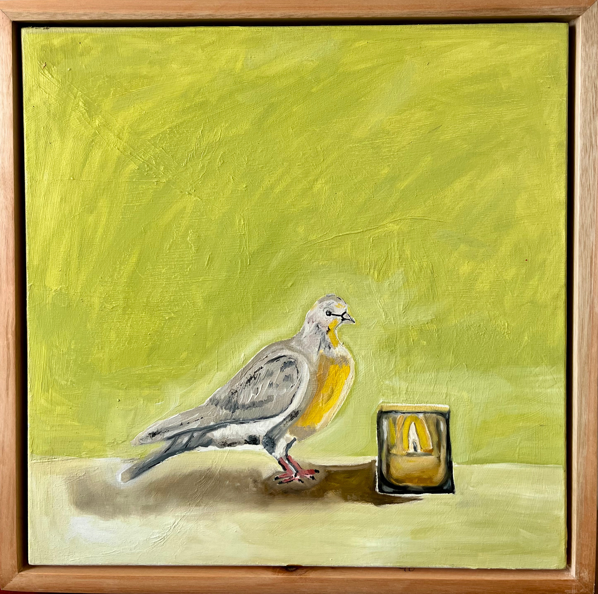 Galo 40x40 cm técnica Impasto com moldura flutuante de